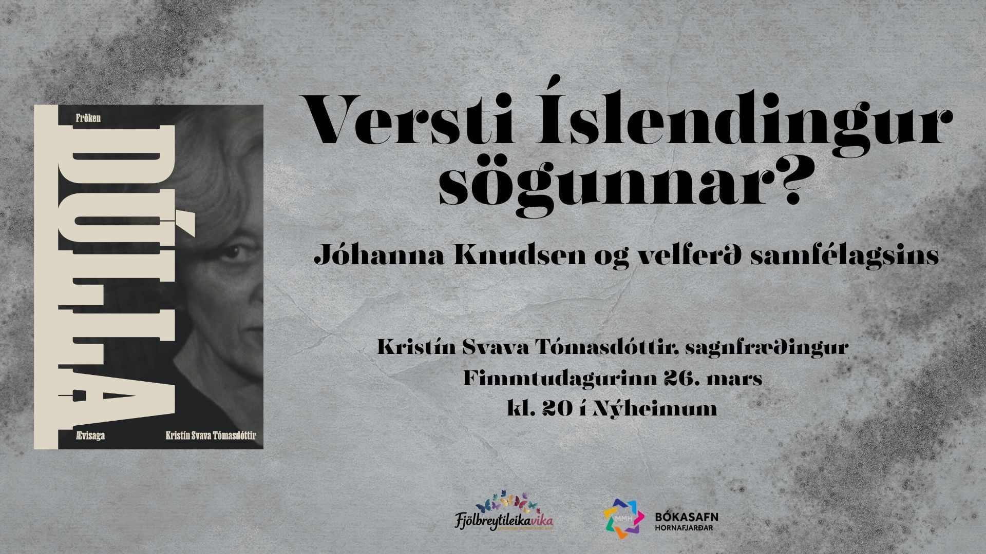 Næstkomandi fimmtudag, 26. mars kl.20, verður annar viðburðurinn okkar haldinn í tilefni af Fjölbreytileika vikunni en það er kynning á bókinni Fröken Dúlla sem fjallar um Jóhönnu Knudsen sem kölluð var Dúlla af ástvinum sínum, en hún var alræmd vegna rannsókna hennar á siðferðisástandinu í Reykjavík á árum seinni heimsstyrjaldar. Nærgöngular yfirheyrslur hennar yfir stúlkum sem grunaðar voru um samneyti við erlenda hermenn hafa verið kallaðar umfangsmestu persónunjósnir Íslandssögunnar.